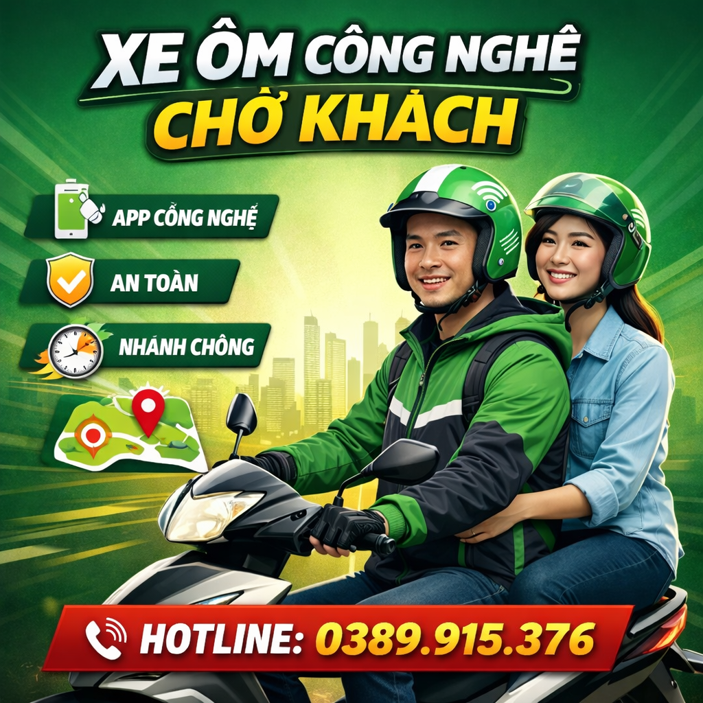 Với Phương Châm " Khách Hàng Là Tất Cả", "An Toàn Là Trên Hết" , Dịch Vụ Xe Ôm Công Nghệ Luôn Hướng Đến Tiêu Chí Chất Lượng, An Toàn, Chuyên Nghiệp. Xe Ôm Công Nghệ Liên Tục Được Người Tiêu Dùng Bình Chọn Là Thương Hiệu Yêu Thích Nhất. Có Hai Cách Quý Khách Đặt Xe : 1.Điện Thoại Trực Tiếp Tổng Đài 0389915376 . 2.Đặt Chuyến Theo Lộ Trình Km Giá Tiền Minh Bạch.